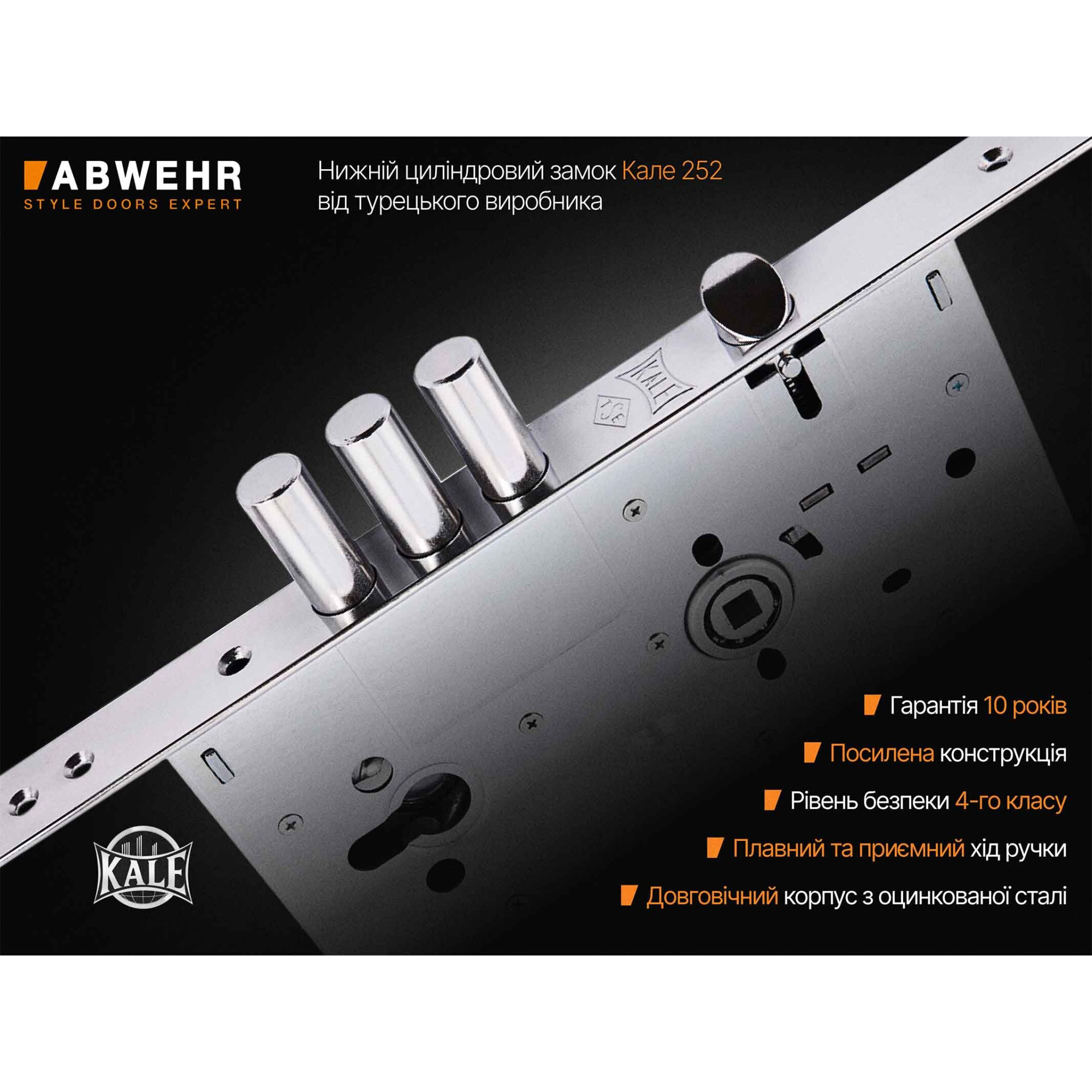 Нижний цилиндровый замок Кале 252, от турецкого производителя, который отлично зарекомендовал себя не только на территории СНГ, но и по всей Европе.