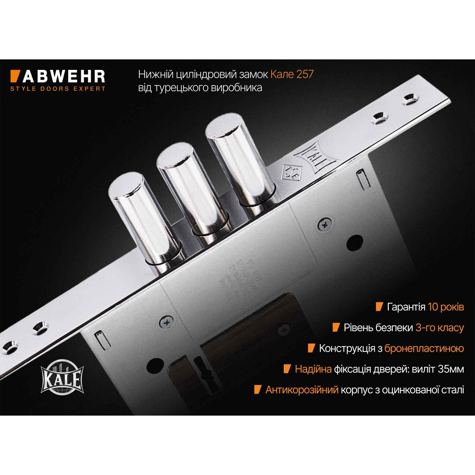 | Замки | Верхний сувальдный Kale 257 и нижний цилиндрровый Kale 252 |